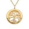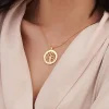 Celebrate the ones you cherish most with our Family Tree Circle Necklace with Cubic Zirconia in Gold Plating! A stunning piece that offers a new take on one of our most popular designs, this necklace showcases names or words that express your feelings, all beautifully arranged on a slim circle that surrounds a graceful family tree adorned with accent stones that provide plenty of sparkle. Once we’ve customized your pendant to order, we present it on a matching closed Rollo chain. This gorgeous necklace is made with 18k Gold Plated Sterling Silver. Features include: