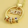♥ Beautifully crafted to order, this slim, circular pendant is adorned with one to six round beads, each customized with the word of your choice.Our craftsmen make this special work became complete by adding a mom pendant and zircon.