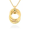 No gesture is more appreciated than a personal gift of love. Our Russian Ring Necklace with Birthstones in Gold Plating is a unique piece you can bestow upon your loved one with its interlacing pendants made of 18k Gold Plating, personal engravings up to 3, and 3 CZ birthstones above them that shine beautifully. With Mother’s Day around the corner, a custom mom necklace is the perfect pick. It features: